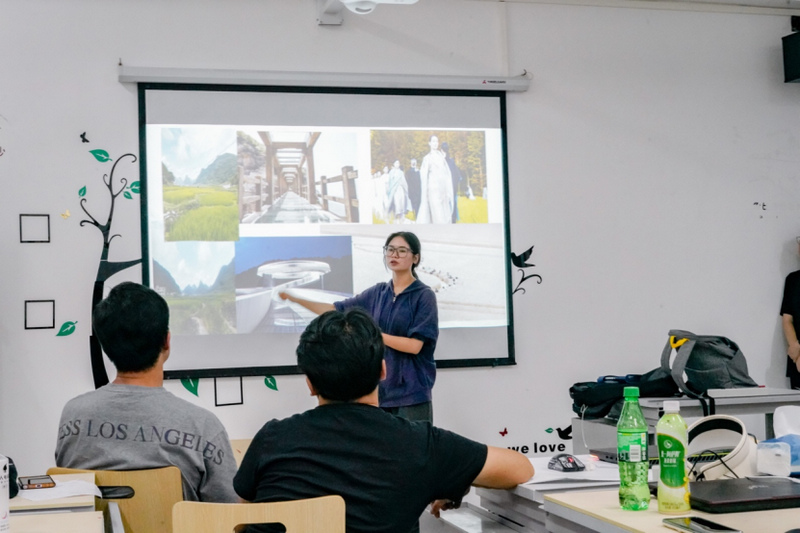 面对新关村布依族特色缺失、传统建筑风貌丧失、村民凝聚力失位、村落财力孱弱等问题,同学们并没有丧失信心,他们深入调研,探访村落的各个角落,与村民、村委会对话,探查村寨尚未被梳理挖掘的民风民俗和村庄特色文化,以期找到村庄的潜在发展动力。在缺乏资金的客观条件下,同学们更侧重寻找一个“低投入,高关注”的活动方式或景观小品作为振兴新关村的“引爆点”,通过活动提升知名度来吸引外部资金的注入,进而带动新关村与外界的良性互动,以此促进当地的农、文、旅融合发展。老师们在这一过程中也不断引导同学们思考“全域旅游”模式下新关村与周边青岩古镇、龙井村等区域之间相互引流的联动策略。经内部汇报后,同学们的思路愈发清晰,纷纷以小组为单位,以新关村自有的资源为依托,依循“针灸式激活”理论,提出了对乡村节点激活的振兴方案和活动策划案,并在过程中与村民村委积极沟通,获取了一系列宝贵意见。