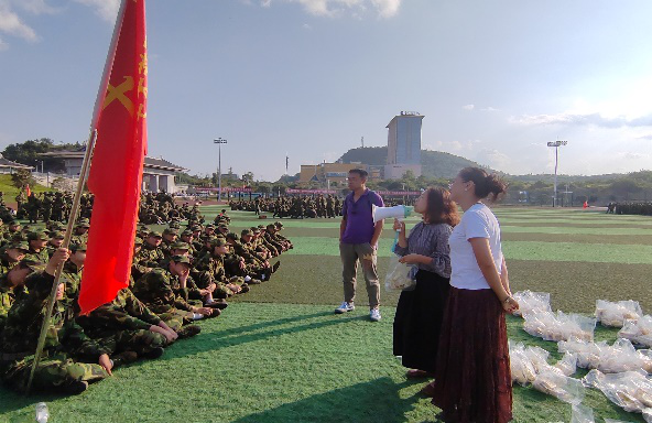 党委书记何璘、副书记陆忠婷、学生科周泉老师一同到南校区田径场慰问2024级参训新生、承训教官和带训教导员。