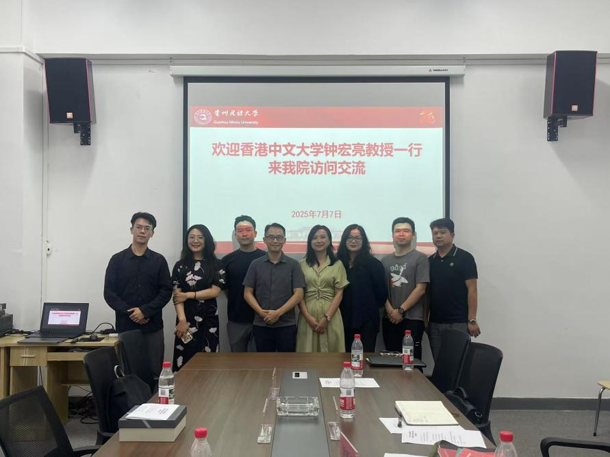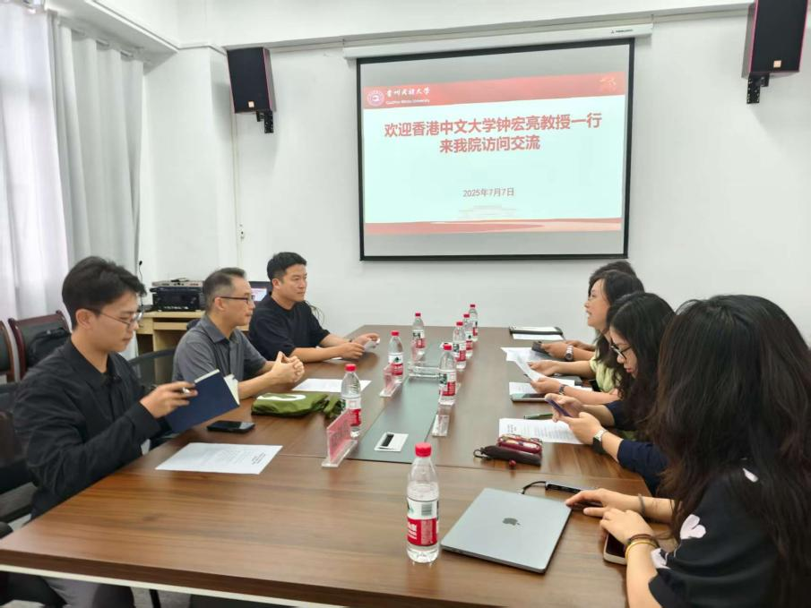 2025 年 7 月 7 日下午,香港中文大学建筑学院钟宏亮教授、韩曼老师及博士生陆淳风一行到我院访问交流,双方在学院 B506 会议室就学科建设、人才培养、乡村振兴实践及未来合作等议题进行交流座谈。学院党委书记何璘,副院长尹新雅出席座谈会,建筑与规划系副主任谢振宇,建筑设计教研室主任黎昌伦,城乡规划专业熊媛老师参加会议。座谈会由何璘书记主持。