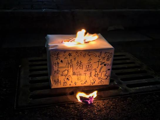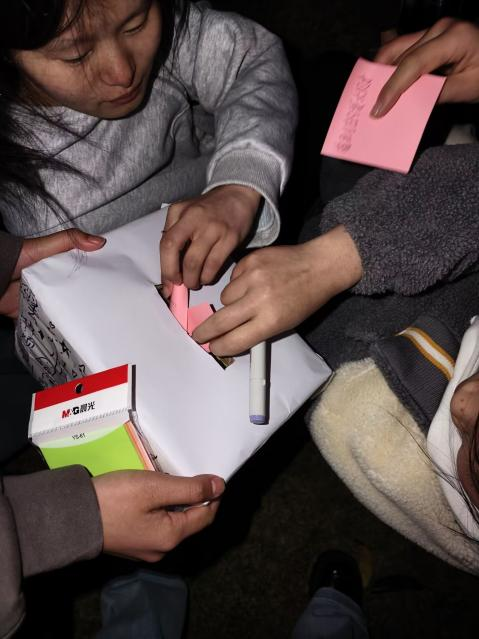 随着夜幕渐深,活动迎来了最为温情的大合唱环节。全场师生手举闪光灯,共同唱响那些触动心灵的旋律。歌声汇成暖流,流淌在每个人心中。在合唱的余韵中,活动进入了最后的仪式——销毁情绪盒子。那些承载着烦恼的纸条被集中处理,象征着所有的负面情绪都随之烟消云散,留下的是轻松、治愈与希望。