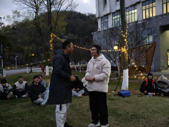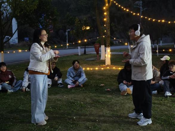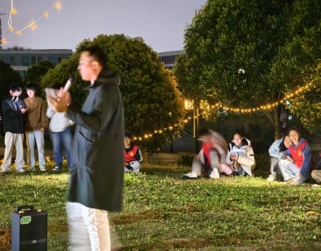 当活动进行到高潮,神秘嘉宾周泉老师的登场引发了全场的欢呼。他以一首节奏明快、充满活力的歌曲,瞬间点燃了现场的气氛,将大家的情绪从舒缓带入热烈。紧接着的“接歌挑战”更是让现场变成了音乐的海洋,大家争先恐后,用歌声进行接龙,展现着青春的朝气与力量。