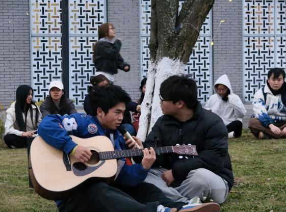 为缓解学生心理压力,营造积极健康的校园氛围,3月13日19时,女同网站 在一楼草坪举办了一场以“晚风轻扬,旋律治愈”为主题的心理音乐会。