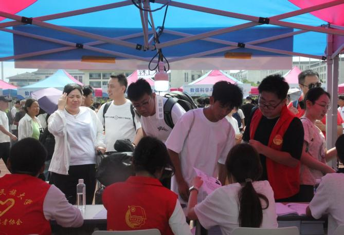 迎新当日,校园内处处洋溢着热情与活力。高大的彩虹门、清晰醒目的指示牌、内容丰富的学院展板,共同营造出热烈而温馨的迎新氛围。在迎新报到点,各项工作有条不紊:身份核验、资料分发、住宿办理等环节衔接流畅,极大缩短了新生的报到时间。学院特别设立的“绿色通道”,为家庭经济困难学生提供一站式贴心服务,确保每一位学子都能无忧入学。