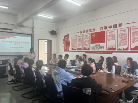 A505会议室开班。出席本次开班仪式的有院党委书记何璘,指导老师田淇以及全体入党积极分子。本次会议由田淇老师主持。