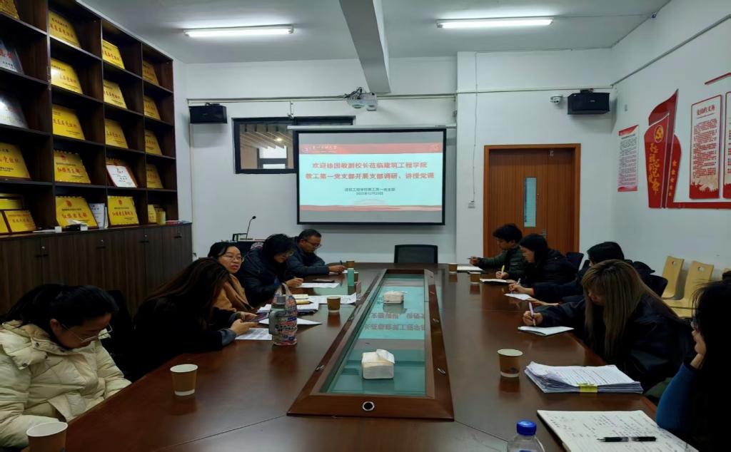 教工第一党支部开展调研,并以“学习贯彻省委十三届八次全会精神 把握政策导向赋能科研增效”为题讲授专题党课,引导支部教师党员精准把握方向、服务区域发展。党课由建工学院教工第一党支部副书记钟昌悦主持,支部全体党员参加。